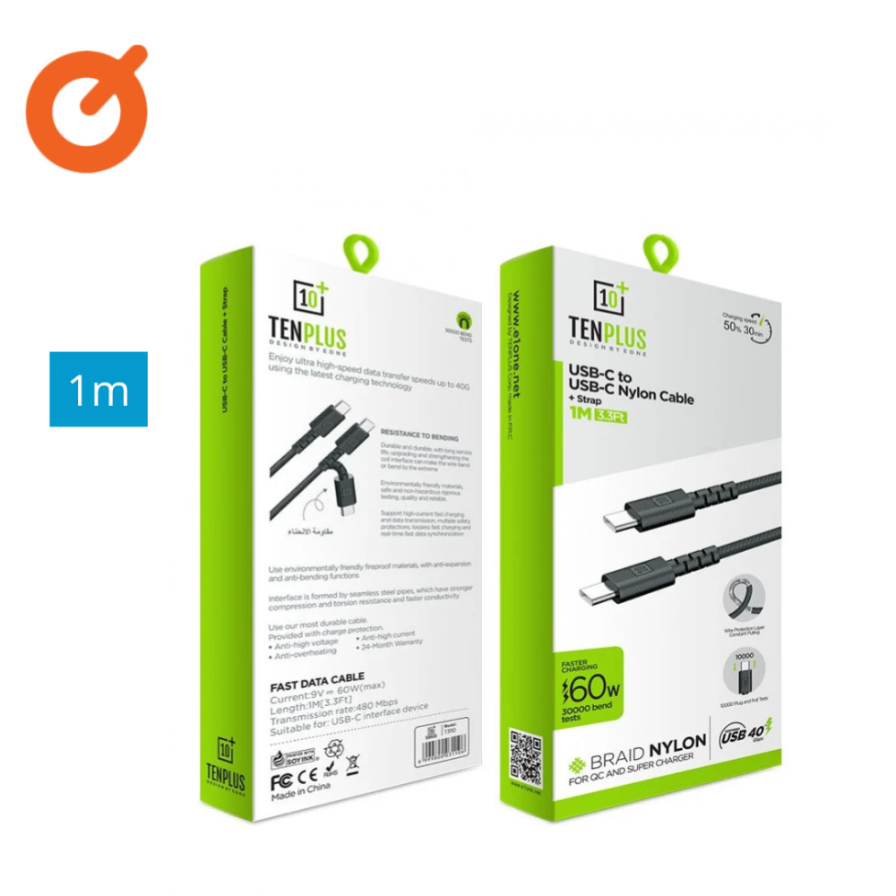 كيبل شحن USB-C إلى USB-C مقاوم للقطع من تن بلس 1 متر